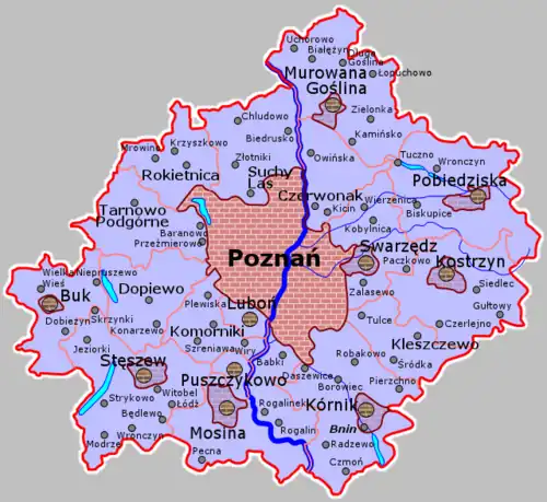 ![]() Poznań city (dark red) and Poznań County (orange) | |