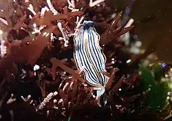 Praestheceraeus bellostriatus, commonly known as the black-striped flatworm or the striped flatworm, is a species of free-living marine polyclad worm in the family Euryleptidae.[1]