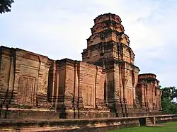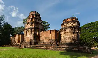 Prasat Kravan (Khmer: ប្រាសាទក្រវាន់) is a small 10th-century temple consisting of five reddish brick towers on a common terrace, at Angkor, Cambodia, south of the artificial lake (baray) called Srah Srang. Its original Sanskrit name is unknown. The modern name in Khmer, "Prasat Kravan", means artabotrys odoratissimus temple. The temple was dedicated to Vishnu in 921 CE,[1]: 70 according to an inscription on doorjambs.[2]