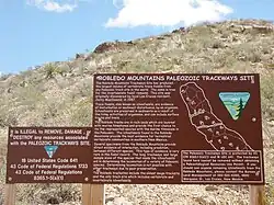 Prehistoric Trackways National Monument is a national monument in the Robledo Mountains of Doña Ana County, New Mexico, United States, near the city of Las Cruces. The monument's Paleozoic Era fossils are on 5,255 acres (2,127 ha)[1] of land administered by the Bureau of Land Management.[2] It became the 100th active U.S. national monument when it was designated on March 30, 2009.