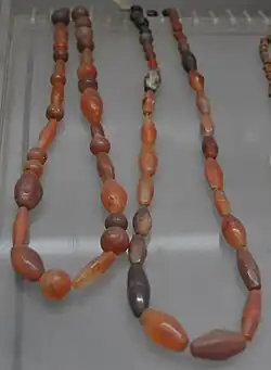 Of the beads in the Ille, these were of two main types, the organic and inorganic types. Of the organic beads, majority of them were whole, Neolithic-type beads. Formation of these beads were characteristically formed by percussion and grinding.[2] Of the organic shell beads, a small percentage of them are cut shell beads and not all of them were as uniform as the microperforated cut shell beads; the beads that do not display the use of technologically advanced techniques were shells of Tridacna rolled into a barrel shape.[2] The microperforated cut-shell beads are generally less than 2 mm in diameter, and thus appear to require a great amount of effort and technique to produce; these can thus be said to belong to the Metal Age.[2]