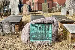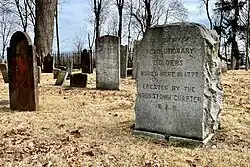 The oldest interments date to 1731. There is a mass gravesite for about 150 soldiers of the American Revolutionary War who died from smallpox in 1777.[2]