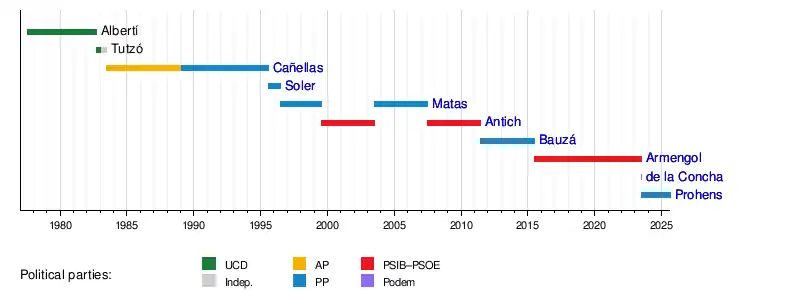 4. ^ Pasaron, Juan (September 25, 1982). "Dimite el presidente del Consejo General de las Islas Baleares". El País (in Spanish). Palma de Mallorca. Retrieved February 24, 2021.