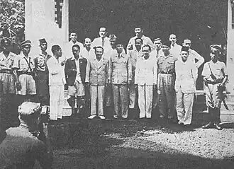 Indonesian had been under Japanese occupation since 1942, but by 1943, realizing they were losing the war, the Japanese appointed Indonesian advisors (Japanese: 参与, romanized: san'yo) to the administration and appointed nationalist leader Sukarno leader of a new Central Advisory Board (Chuo Sani-kai Japanese: 中央参議会) in Jakarta.[1] On 7 August, the day after the atomic bombing of Hiroshima, the Preparatory Committee for Indonesian Independence (Indonesian: Panitia Persiapan Kemerdekaan Indonesia) or PPKI was established. Sukarno was chairman, and Hatta vice-chairman. On 19 August 1945, this body created 12 ministries for Indonesia's first cabinet. The cabinet as formed contained sanyo as well as officials who had not worked with the Japanese. The cabinet was responsible to President Sukarno.[2][3]