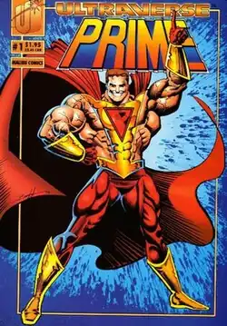 Prime is a superhero character created by Bob Jacob, Gerard Jones, Len Strazewski, Norm Breyfogle, and Bret Blevins. The character debuted in Prime #1 under Malibu Comics' Ultraverse imprint, and was one of the publisher's flagship characters, and a member of its superhero team Ultraforce.[1] The character is a thirteen-year-old boy named Kevin Green with the power to transform into the physical form of a super-powered adult, but with his adolescent mind unchanged. This is a source of conflict for the character, as he is frequently placed in situations he may not be mature enough to deal with.