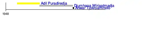 On 28 December 1948, Wiranatakusumah appointed Djumhana Wiriaatmadja, a non-party member of the parliament, as the cabinet formateur.[5] Djumhana was officially installed as the prime minister on 10 January 1949.[6] After the recognition of Indonesia by the Dutch government on 27 December 1949, Djumhana resigned as the prime minister.[7] He was officially replaced by Anwar Tjokroaminoto, the deputy chairman of the Indonesian Islamic Union Party, on 11 January 1950.[8]