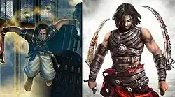 Critics and fans praised the Prince's portrayal in The Sands of Time continuity, and this is generally seen as the most popular version of the character.[18][61] The Prince's change into a darker character for Warrior Within saw mixed reactions, with fans and many critics seeing it as a change for the worse.[44][63] Others praised the change, such as Heather Newman of Detroit Free Press.[44][64] Despite the mixed critic and fan reception, Ubisoft have defended the change as a legitimate evolution of the Prince's character.[18] The Prince's portrayal in The Two Thrones both pleased Mechner and was more favorably received by critics and fans.[21][18][61] GameSpot's Bob Colayco saw this latest portrayal as an interesting self-reference to the criticism, suggesting that "the internal strife in the schizophrenic prince's mind forms a compelling part of the storyline".[65]