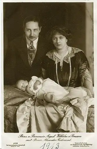 With his wife, Princess Alexandra of Schleswig-Holstein-Sonderburg-Glücksburg, Prince August Wilhelm had one son: