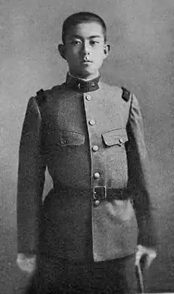 Prince Kan'in attended the Gakushuin Peers' School and graduated from the 44th class of the Imperial Japanese Army Academy in 1924. He was a lieutenant in the infantry and served in the Imperial Guard Division. Following a course in the Military Staff College in 1927, he was promoted to captain and joined the faculty of the Cavalry School. He graduated from the 44th class of the Army Staff College in 1932 and rose to the rank of major in 1936.