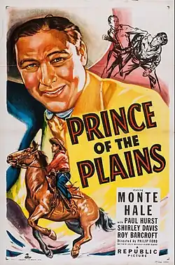 Prince of the Plains is a 1949 American Western film directed by Philip Ford and written by Louise Rousseau and Albert DeMond. The film stars Monte Hale, Paul Hurst, Shirley Davis, Roy Barcroft, Rory Mallinson and Harry Lauter. The film was released on April 8, 1949, by Republic Pictures.[1][2][3]
