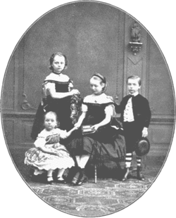 from left to right: Louise Sophie (standing), Feodora, Augusta Victoria and Ernst Günther, around 1876