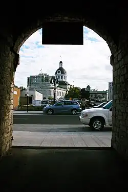 The street was originally called Store Street due to a large government store at the lower end.[1] It was renamed Princess Street in honour of the birth of the Princess Royal in approximately 1840.[2] The portion west of Highway 33, originally well outside the city limits, appears on maps as York Road at least until 1908[3] and is historically part of the original 1817 Kingston Road from Toronto (which ends in name today in Ajax). An 1839 toll road, one of the first to be macadamized in the region, retained this same path between Kingston and Napanee; some of this road's stone markers remain visible on the western portion of Princess Street today.[4]