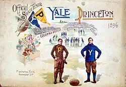 Princeton and Yale first met on the gridiron in 1873 and soon dominated the sport.[5] Princeton has been considered the best football program of the nineteenth century. Princeton played the University of Virginia in 1890, a contest considered the first major North–South intersectional football matchup. Princeton won, 116–0.[6] Yale's record was 100–4–5 in the 1900s.[7][8][9]