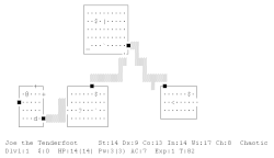 A procedurally generated dungeon map in the video game NetHack