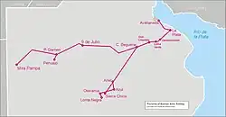 - A 270 km extension branch to Meridiano V, starting between a point to be determined between Monte and Saladillo stations.