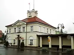 During the mid-17th-century Swedish Deluge campaigns, castle and town were burnt down completely. Upon the Second Partition of Poland in 1793, Przedecz was occupied by Prussian forces and incorporated into the newly established South Prussia province; it passed to the Napoleonic Duchy of Warsaw in 1807 and to Russian Congress Poland in 1815. From about 1824, a Protestant church was built by German settlers on the ruins of the medieval castle. The present town hall, a Neoclassical building, was erected in 1826. Other sites of interest comprise the early twentieth century Neo-Gothic parish church of the Holy Family[4] by renown Polish architect Józef Pius Dziekoński. During the January Uprising, in February 1863, after the Russian regiment left the town, a Polish insurgent unit arrived, took over the local weapons storage and took 10 Russian prisoners of war.[5] Przedecz was stripped of its town rights in 1867 as punishment for the Polish January Uprising. The town rights were restored in 1919,[4] shortly after Poland regained independence in 1918.