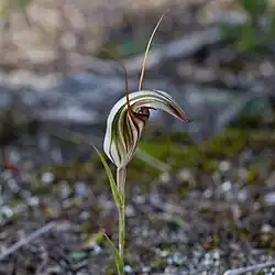 3. ^ a b Jeanes, Jeff. "Pterostylis dolichochila". Royal Botanic Gardens Victoria: vicflora. Retrieved 14 May 2017.