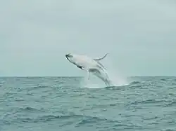 Humpback whale breaching off the village.
