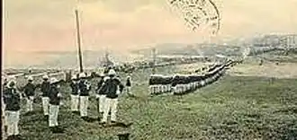 Pedro Albizu Campos was a Puerto Rican who volunteered in the United States Infantry. Albizu was commissioned a Second Lieutenant in the Army Reserves and sent to the City of Ponce where he organized the town's Home Guard. He was called to serve in the regular Army and sent to Camp Las Casas for further training. Upon completing the training, he was assigned to the 375th Infantry Regiment. The 375th was a regiment of black Puerto Ricans who were trained by non-Puerto Rican officers for overseas deployment, but the war ended before it could join the fight in Europe.[4] Albizu was honorably discharged from the Army in 1919, with the rank of First Lieutenant. During the time that he served he was exposed to the racism of the day which left a mark in his beliefs towards the relationship of Puerto Ricans and the United States, thus becoming a leading advocate for Puerto Rican independence.[18][31] Another Puerto Rican of African descent who was sent to Camp Las Casas was Nero Chen. Chen, a.k.a. "El Negro," was Puerto Rico's first professional boxer to gain international recognition and served as a boxing instructor to the servicemen at the camp.[32]