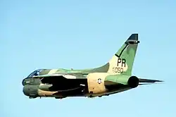 An A-7D Corsair II of the 198th Tactical Fighter Squadron, 156th Tactical Fighter Group in flight prior to 12 January 1981 attack. This was one of the destroyed aircraft.