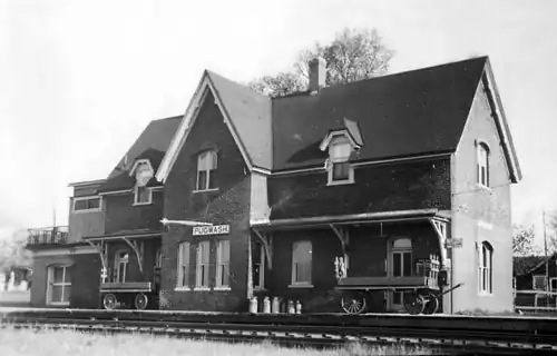 On September 18, 1882, the town of Pugwash celebrated the commencement of work on the railway in Pugwash. The commencement of work there with special ceremonies presided over by Mr. and Mrs. Alexander Wilson a leading citizen with a "sod-turning ceremony". The station was designed by Sir Sandford Fleming, the Scottish-born engineer notable for successfully promoting standard time, and it was built by Rhodes, Curry & Co.[4] The first passengers to arrive via railway to Pugwash was a group of Cumberland County school teachers, October 28, 1890.[5]