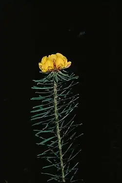 This species of pea grows in heath, forest understorey and on cliffs at an altitude of 900–1,200 m (3,000–3,900 ft) on Mount Barney and Mount Maroon in south-eastern Queensland.[2]