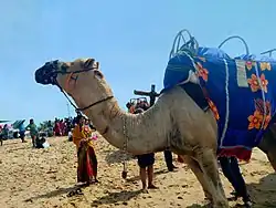 Puri Beach or the Golden beach is a beach in the city of Puri in the state of Odisha, India. It is on the shore of the Bay of Bengal. It is known for being a tourist attraction and a Hindu sacred place.[1][2] The beach is the site of the annual Puri Beach Festival, which is co-sponsored by the Indian Ministry of Tourism, the city of Puri , the Development Commissioner of Handicrafts, and the Eastern Zonal Cultural Center, Kolkata.[3]