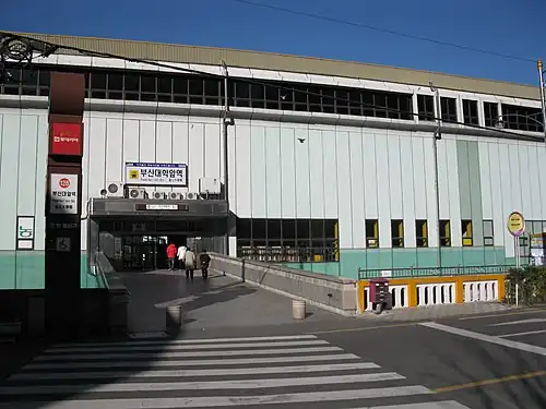 Pusan National University Station (Korean: 부산대역; Hanja: 釜山大驛) is a station of Busan Metro Line 1 in Jangjeon-dong, Geumjeong District, Busan, South Korea.