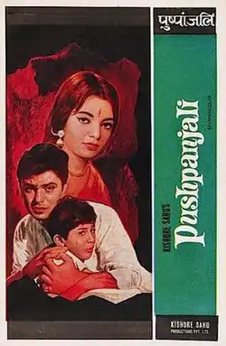 Pushpanjali (An Offering of Flowers) is a 1970 Hindi, romantic drama film, produced and directed by Kishore Sahu.[1][2] The film was made under the "Kishore Sahu Productions" banner.[3] The story, screenplay and dialogues were by Kishore Sahu. Laxmikant Pyarelal composed the music for the film, with lyrics written by Anand Bakshi.[4] Sanjay Khan, Naina Sahu, Kishore Sahu, Premnath, Faryal, Manmohan Krishan, Lalita Pawar and Om Prakash were the main star cast of the film.[5]
