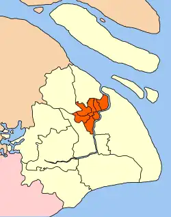Puxi (Chinese: 浦西; pinyin: Pǔxī, Shanghainese Phu上-shi平, lit "Huangpu West Bank") is the historic center of Shanghai, China, and remains the home of approximately 48% of Shanghai's residents in an area of 288 km2.[1] Puxi is distinguished from Pudong to its east, which is separated from it by the Huangpu River. Despite the growing importance of Pudong's Lujiazui area, Puxi remains Shanghai's cultural, residential and commercial center.