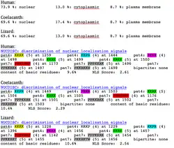 QSER1 protein contains two high conserved domains found not only in QSER1 but also in other protein products. These include the PHA02939 domain from amino acid 1380-1440 and the DUF4211 domain from amino acid 1522-1642.[24][25] Nuclear localization was predicted by pSORT. This property was conserved from the human QSER1 to the coelacanth QSER1. Multiple conserved nuclear localization signals were also predicted within the QSER1 protein by pSORT.[26]