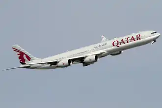 A Qatar Airways Airbus A340-600. The airline became a customer for the type in 2003.[26]