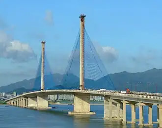 The Qi'ao Bridge is a cable stayed bridge located in Zhuhai, Guangdong Province, China. Opened in 1998, the bridge spans 320 metres (1,050 ft) over the Pearl River to Qi'ao Island.