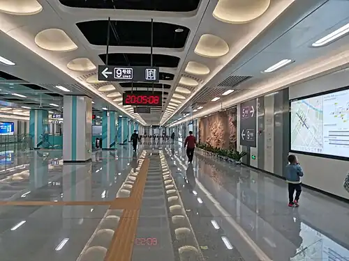 Qianwan station (Chinese: 前湾站; pinyin: Qiánwān Zhàn) is an interchange station for Line 5 and Line 9 of the Shenzhen Metro. It opened on 28 September 2019 with Line 5,[1] whilst Line 9 opened on 8 December 2019.[2][3]