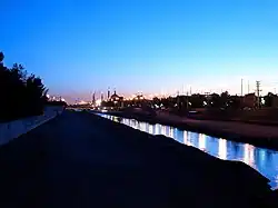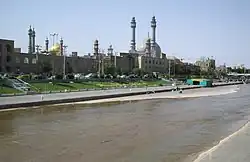 The Qom River or Qom Roud (Persian: رودخانه قم‌رود), originally Golshan River (گلشن رود ”Flowering River”), is a large river in Iran that receives its water from the Zagros Mountains and mounds into the Namak Lake.[1] The Qom River flows through the city of Qom, and together with the Qareh Su it gains a length of approximately 400 km (250 mi).[2] The water level fluctuates greatly, between 312 m³/s and only 4 m³/s. This is partially the effect of the use of the Qom water for irrigation.