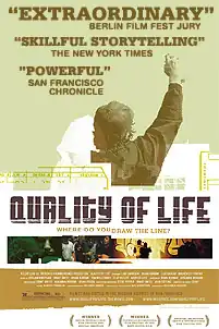 Quality of Life, also known as Against the Wall, is a 2004 drama film about the story of two graffiti writers in the Mission District of San Francisco. Directed by Benjamin Morgan, Quality of Life stars Lane Garrison, Brian Burnam, Luis Saguar and Mackenzie Firgens. Morgan co-wrote the screenplay with Burnam, who is a former graffiti writer. The film was shot and edited in the Mission District, home to one of the world's most active and influential graffiti scenes.