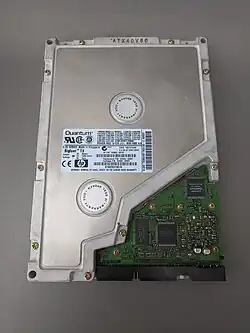 The second series was the Quantum Bigfoot CY series, introduced around December 1996.[10] Bigfoot CY drives shared the characteristics of a 3,600 RPM spindle speed and an ATA-2 interface connection. These drives had one to three 2.1 GB platters,[11] and were produced in capacities of 2.1 GB, 4.3 GB and 6.4 GB.[10][12] Their access time was advertised as being "as low as 12ms,"[12] and they had 128 KB of cache.[13] The suggested retail prices were $224, $310 and $395, respectively.[10] The largest drive of the CY series could transfer about 6 MB/sec from the platters when tested with hdparm -t in Linux.[14]