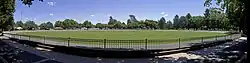 Cricket began to be played in an organised fashion in New South Wales in the 1830s.[2] On January 2, 1863 a meeting of twenty five persons was held in Mr. W. Lee's long room to establish the 'Queanbeyan Cricket Club', "to pay yearly in advance, in order to prevent the breaking down, such as other clubs had, by the trouble of collecting monthly subscriptions." Mr. Wright was elected to the office of president; Mr. WV. Scrivenor, treasurer; Mr. DeLissa, secretary; and Messrs. Morton, Kinseln, Davis and Doyle to be members of the committee.[1] In the 1850s a more informally structured 'Queanbeyan Club' or 'Queanbeyan District Club' had played cricket against teams from Braidwood,[3] Gininderra,[4] Goulburn (the 4th such match being played in 1859)[5] and Yass.[6] Occasional games were also played in the 1850s between the married and single members of the Queanbeyan club.[7] Queanbeyan's first police magistrate Captain AT Faunce died while playing cricket for the Queanbeyan club on 26 April 1856,[8] having been instrumental in introducing cricket to the region[9][10][11] (he and his brother having played for a Military team in Sydney in the 1830s including against the Australian Cricket Club at Hyde Park in 1833[12] and the Racecourse in 1834,[13][14] as well as against an Australian civilian XI in 1834).[15][16] His son, the Rev. Canon AD Faunce of the Goulburn Diocese and St Clement's Church at Yass also played for the Queanbeyan Club in the 1850s[17] and 1860s.[18][19][20]