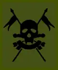 The regiment's nickname, the 'Death or Glory Boys', came from their cap badge and was known as "the motto".[4] This was the combined cap badges of the two antecedent regiments, and features a pair of crossed lances, from the 16th/5th Queen's Royal Lancers, together with a skull and crossbones, below which is a ribbon containing the words 'Or Glory'. This comes from the 17th/21st Lancers, and was the cap badge of the 17th Lancers (the original 'Death or Glory Boys').[1]