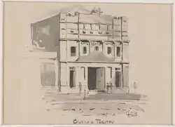 Originally named the Queen's Theatre Royal, it was located on the north-east corner of Queen and Little Lonsdale streets[1] or the south-west corner of Queen and Little Bourke streets. It was built for councillor, later mayor John Smith, licensee of the Adelphi Hotel in Little Flinders Street and the architect was Charles Laing. It was opened on 21 April 1845[2] with a drama Bear Hunters (or) The Fatal Ravine. The first manager was the actor Francis Nesbitt.