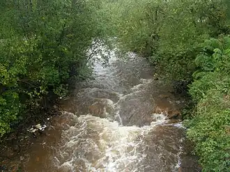 The river valley is low-lying and narrow, and the subsequent fogs are notable in their effect, some created by smelter fumes in earlier years.[2][3][4]