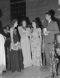 Textile industries embraced the idea of queens from the late 1920s, to act as ambassadors for the industry in face of a crash in cotton prices.[1] Queens from a variety of textile industries were popular in the 1930s, but social changes after the Second World War meant that they did not return to their previous popularity.[2] In 1949 a new 'Textile Queen' competition was launched in Blackpool, but it was not repeated.[2]