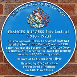 15. ^ a b c d "Our queen when cotton was king". Lancashire Telegraph. 26 April 2007. Retrieved 1 November 2020.