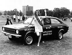 The National Coal Queen of Britain competition was introduced in 1969 and the last event was held in 1996.[19] It was a collaboration between the National Coal Board and the National Union of Mine Workers.[20] However smaller, local competitions had been held since the 1950s.[21] Entrants had to either work for the Board, or have a relative who did.[21] Runners-up became escorts of the new Coal Queen, and were known as 'The Miners' Lamps'.[20] Winners of the pageant could win holidays, money and clothes.[22] The 1977 winner, Marie Redford, won her weight in Babycham.[23]