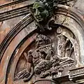 The carvings on the facade of the building are an example of the high quality of local sandstone carving, in particular that of prolific local sculptor William Flint.