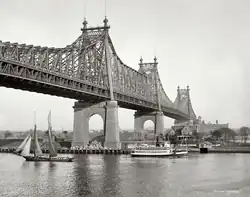 The Queensboro Corporation was formed by a group of investors from New York headed by Edward A. MacDougall.[1] The corporation was founded on August 12, 1909, with the purpose of developing the area that was then called Trains Meadow. The first land purchase of 128 acres (52 ha) was completed in 1910, and the corporation had bought about 350 acres (140 ha) by 1914. MacDougall renamed the area Jackson Heights, after Jackson Avenue (now Northern Boulevard), the main east–west road at the time. There were no prominent "heights" in the area, but the word was presumably chosen to denote social exclusivity. At first the area could most easily be reached via a ferry from Manhattan.[2] The Queensboro Bridge opened in 1909, making the area more accessible.[3]