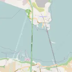 The bridge is the third crossing of the Forth at Queensferry, alongside the Forth Road Bridge, completed in 1964, and the Forth Bridge, a railway bridge completed in 1890. It is sited west of the road bridge, with the northern landfall at St Margaret's Hope, between Rosyth Dockyard and North Queensferry and the southern landfall just west of Port Edgar in South Queensferry. The central tower was constructed on the Beamer Rock, a small islet in the Forth.[54]