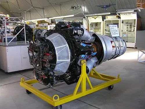 The museum has a large collection of aircraft engines many of which are displayed on stands beside the aircraft. They include piston engines, turbojets and turboprop types.
