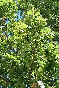 Quercus × schuettei (or Quercus schuettei), known as Schuette's oak, is a hybrid species of white oak native to the Canadian provinces of Ontario and Quebec, and the US states of Illinois, Indiana, Iowa, Kentucky, Michigan, Minnesota, Missouri, New York, Ohio, Oklahoma, Vermont, and Wisconsin.[2] It is a naturally occurring hybrid of swamp white oak (Quercus bicolor) and burr oak (Quercus macrocarpa), found where their ranges overlap. Its parents are both placed in Quercus sect. Quercus.[3]