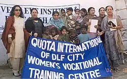 Quota International, Inc. is an international service organization that, provides basic needs to women, children, the deaf, and hard of hearing in communities around the world.[1] Quota International's world service projects were aligned with the United Nations' Millennium Development Goals. Specifically, Quota clubs worked towards UN MDG Goals 1 and 3: to eradicate extreme poverty and hunger, and to promote gender equality and empower women, respectively.[2] The organization was founded in Buffalo, New York, in 1919 by Wanda Frey Joiner, as a service club for women similar to that of popular all-male clubs.